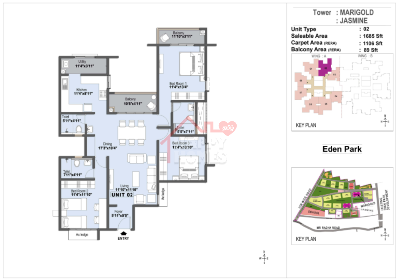 The project is a premium residential development spread across 14 acres, offering thoughtfully designed 2 and 3 BHK apartments. With unit sizes ranging from 1100 sq.ft. to 1685 sq.ft., it caters to modern family needs while ensuring spacious living. Rising up to 18 floors, the apartments are ready to occupy and come at a starting price of ?68 Lakh onwards, going up to ?98 Lakh.